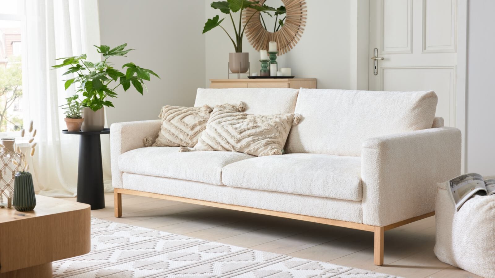 Den Mittelpunkt des Wohnzimmers bildet das Sofa, das eher schlicht sein sollte. Farben wie Taupe, Beige oder Hellgrau sind zurückhaltend und erlauben deshalb mehr Freiheiten in der Dekoration. Besonders angesagt ist der Trendbezug Cord. Aber auch Bouclé oder Samt machen eine gute Figur. Für das ultimative Wohlfühl-Erlebnis sorgt ein großes Bigsofa, auf dem es sich gemütlich die Beine ausstrecken lässt.