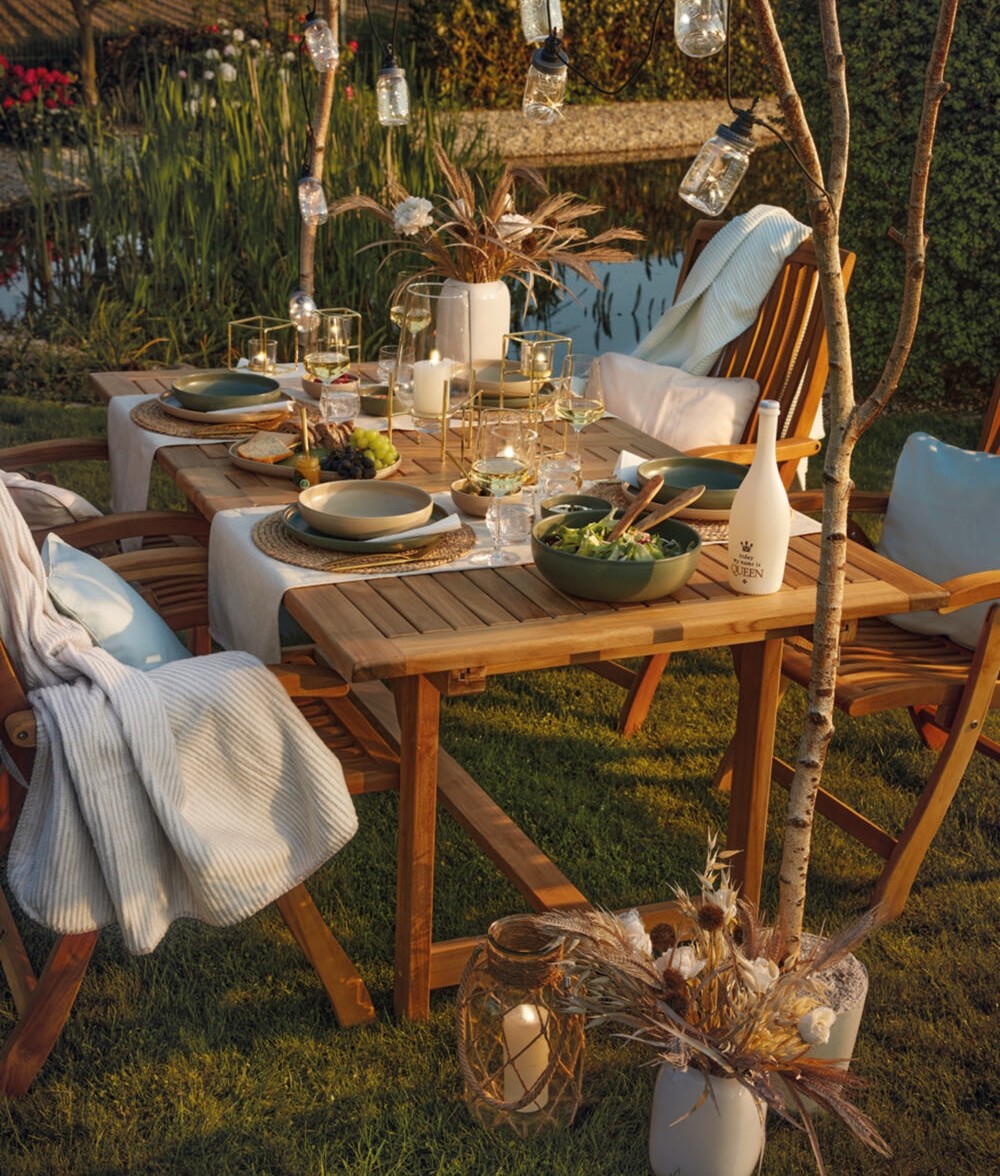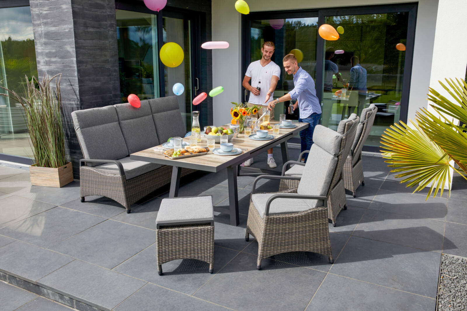 Nicht nur die Deko und das Essen sind entscheidend für eine entspannte Sommerparty, die allen im Kopf bleibt. Bereits die Möbel machen viel aus. Bequeme Gartenstühle laden zum gemütlichen Beisammensein ein. Ein großer Gartentisch bietet viel Platz für ein köstliches Essen, Snacks und Fingerfood.