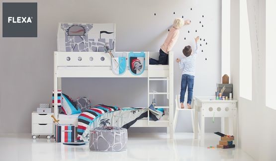 Sind die ersten Schritte getan und das Kinderzimmer wird auf eigene Faust erkundet, ist es langsam an der Zeit, dass die Möbel im Babyzimmer Platz für Kinderzimmermöbel machen. Schließlich wird im Kinderzimmer Raum zur kreativen Entfaltung benötigt! Also muss genügend Platz zum Spielen und Toben, zum Basteln und Kuscheln oder zum Bau einer Bude vorhanden sein. Glücklicherweise ist die Vielfalt der Einrichtungsmöglichkeiten für Kindergarten- und Grundschulalter nahezu grenzenlos. Es gibt unzählige praktische Lösungen, die jeden Raum in das perfekte Kinderzimmer verwandeln: von Kinderbetten, Kinderkleiderschränke, Schreibtische und Kinderdrehstühle, über praktische Aufbewahrungsmöbel bis hin zu Kinderzimmer-Komplettsets.