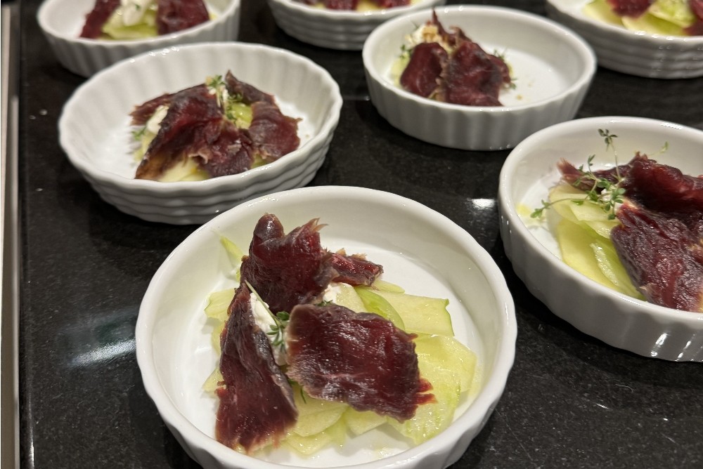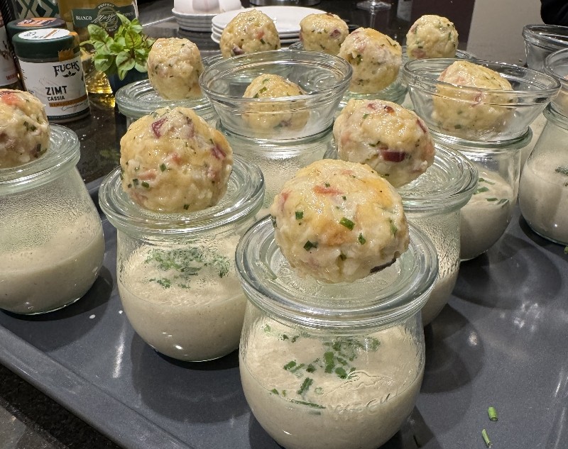 Am 12. November sind bei unserem Kochevent "Wildes Fingerfood" in unserer Kochschule köstliche Häppchen entstanden. Unter Anleitung von Koch Florian Trippe haben die Teilnehmer unter anderem feines Wildschweinragout und Rehrücken mit Nusskruste gezaubert.