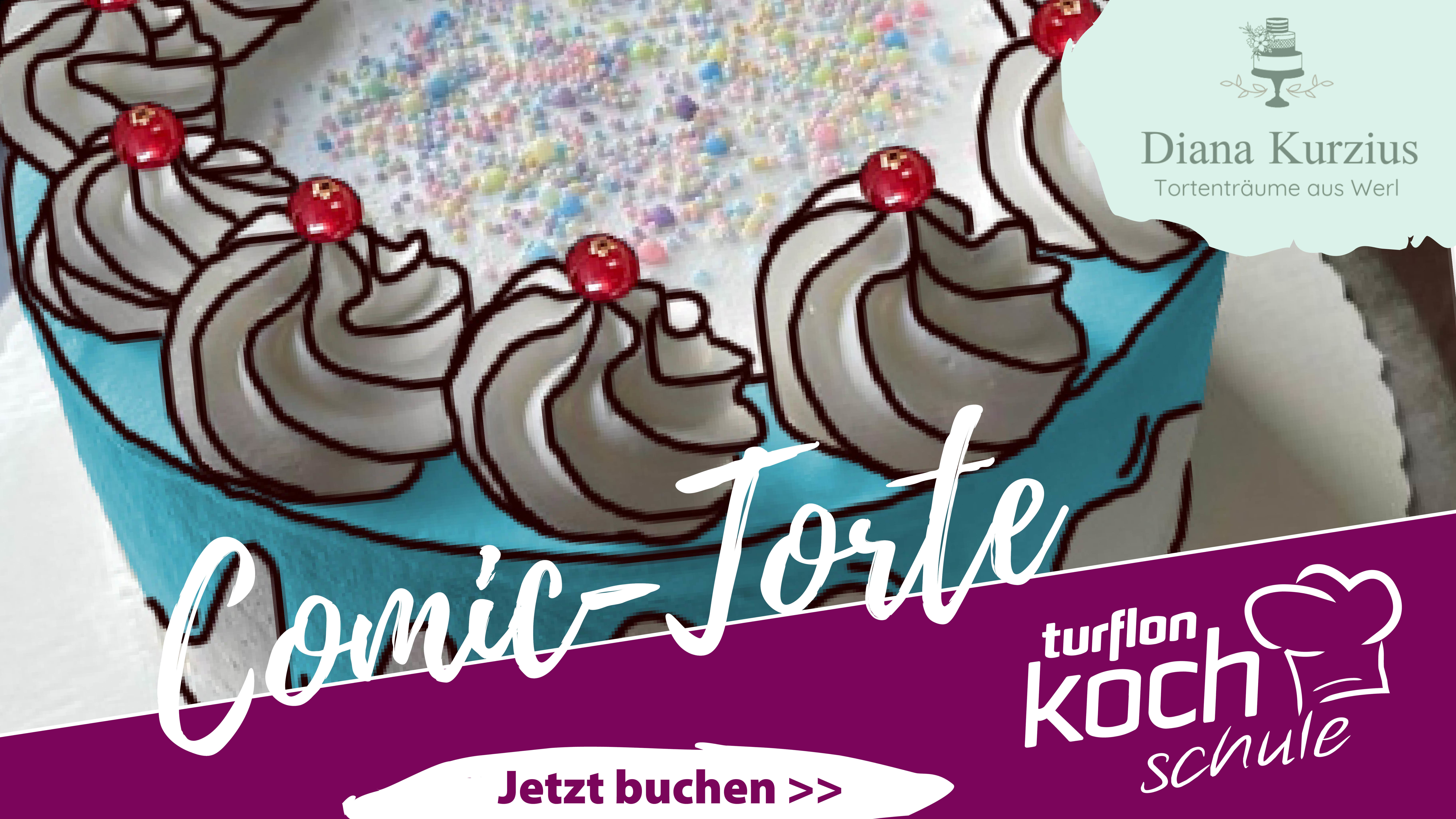 Kreiere gemeinsam mit Diana Kurzius eine coole Torten im Comic-Style mit Fondant, Buttercreme und Früchten.