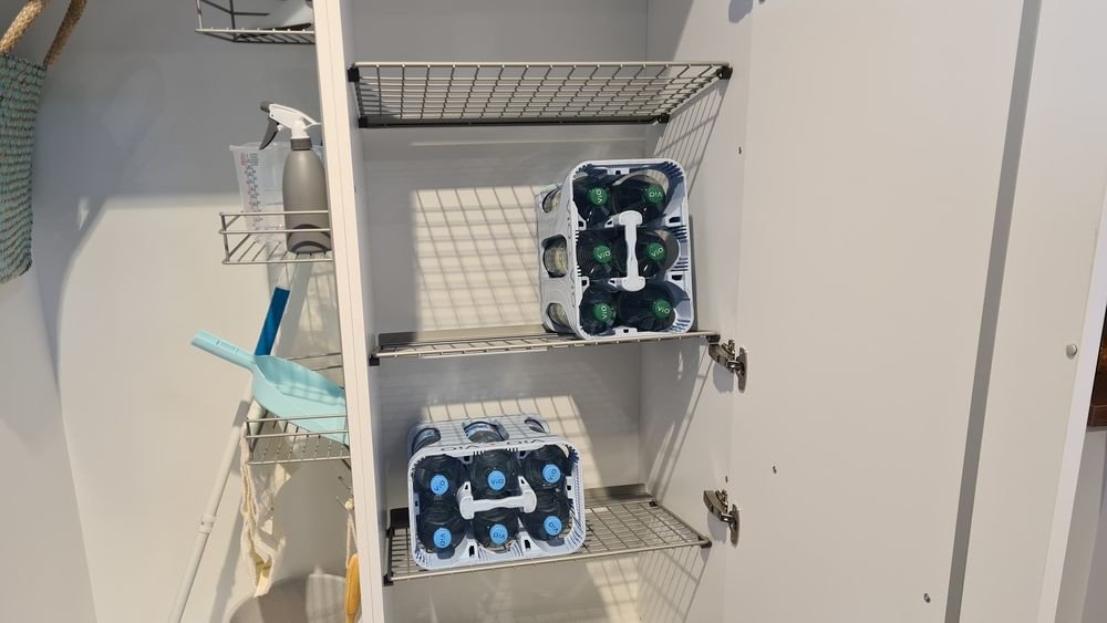 Damit auch deine Getränke einen geeigneten Platz im Hauswirtschaftsraum haben, sind Getränkekistenhalter zu empfehlen. Achte dabei auf eine ergonomische Regalkonstruktion, damit du die Kisten rückenschonend entnehmen und lagern kannst.