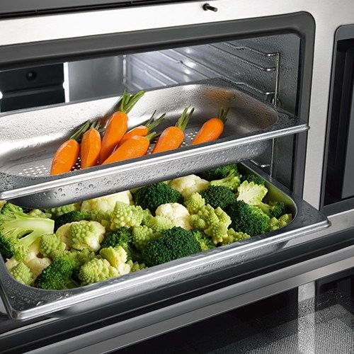 Intelligente Technik für garantiertes Gelingen: Die Dampfgarer von Miele präsentieren ein gesundes und intelligentes Kocherlebnis. Mit einer Vielzahl von unterschiedlich einstellbaren Automatikprogrammen wird das Menügaren zum Erlebnis. Denn diese Technik sorgt für perfekte Ergebnisse beim Kochen. Ein ganz besonderes Element ist dabei der geräumige Garraum. Auf drei Ebenen ist dort Platz für mehrere Behälter nebeneinander und übereinander. Und falls mal etwas daneben geht: Der Garraum aus hochwertigem Edelstahl ist im Handumdrehen wieder blitzblank.