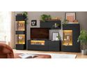 Moderne Vitrine in einem edlen Mattschwarz mit einer Glas- und einer Holztür sowie viel Stauraum.