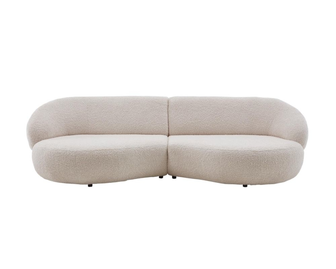 Die Rundungen des Megasofas "Gabonn" und der helle Bezug verleihen diesem einen modernen Look. Mit dabei sind vier Wurfkissen, die für noch mehr Gemütlichkeit sorgen.