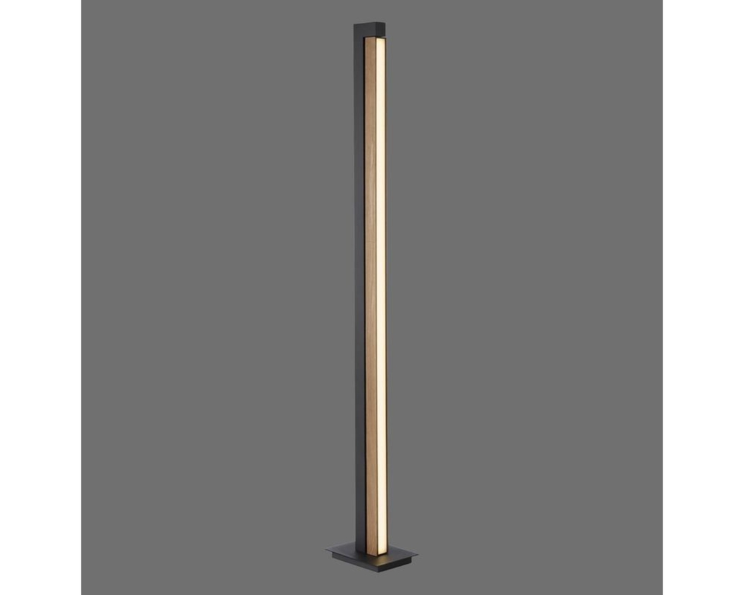 LED-Stehleuchte "Pure Lines" aus Eiche und Metall. Dimmbar und mit drehbarem Leuchtstab.