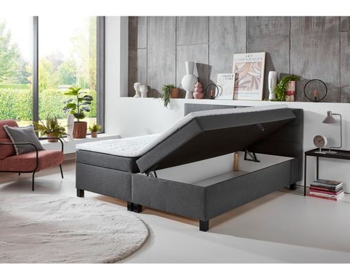 Dieses Boxspringbett bietet nicht nur einen bequemen Platz zum Ausruhen, sondern dank eines Bettkastens auch praktischen Stauraum.