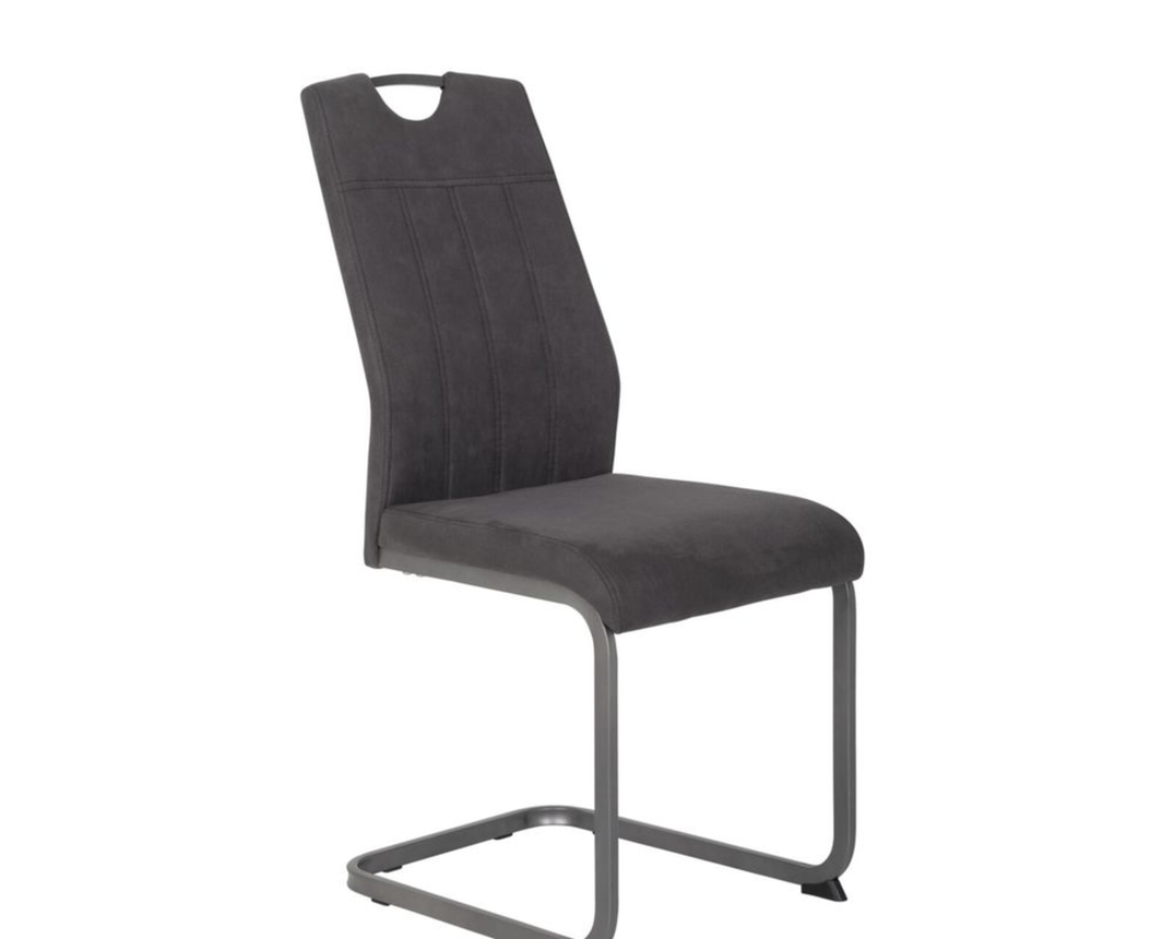 Bequemer Schwingstuhl "Hagen" in anthrazitfarbenem Bezug und mit grauem Metallgestell.