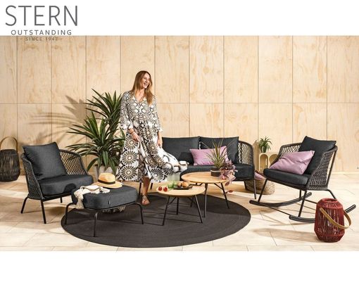 Der Beistelltisch "Frida" verleiht jedem Garten dank der Kombination aus einer Teakholz-Tischplatte und einem Gestell aus mattschwarzem Aluminium einen modernen Look.