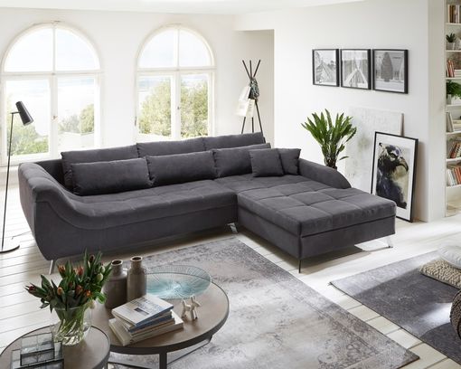 Herrliche Wohnlandschaft in modernem Design, inklusive drei Nieren-, drei Rücken- und zwei Zierkissen in Korpusbezug.