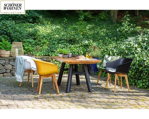 Geselliges Beisammensein oder Homeoffice im Garten wird mit den Schalenstühlen der SCHÖNER WOHNEN-Kollektion noch entspannter. Auf ihnen lässt es sich dank der ergonomisch konzipierten Sitzschale stundenlang aushalten.