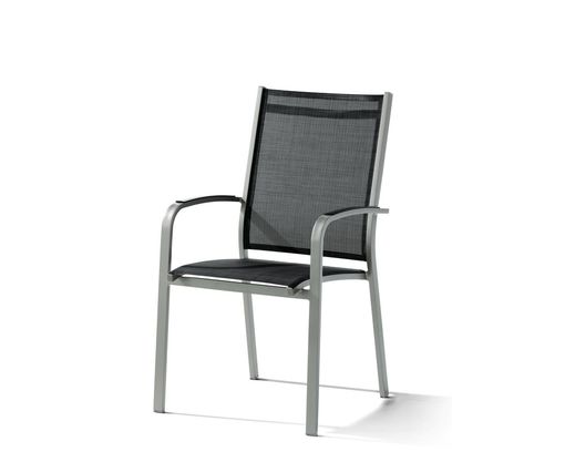 Der Stapelsessel "Meran" bietet eine moderne Sitzgelegenheit für den Garten. Das Aluminiumgestell in Graphit/Grau bildet einen schicken Kontrast zum dunklen Textilux®-Bezug.