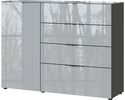 Die Kommode Göteborg mit 4 Schubkästen und einer Tür (2. von rechts) bietet genügend Stauraum für allerlei Dinge. Sie ist in einem modernen Graphit/Silbergrau gehalten. Abgerundet wir der Look durch schlichte Metallgriffe.