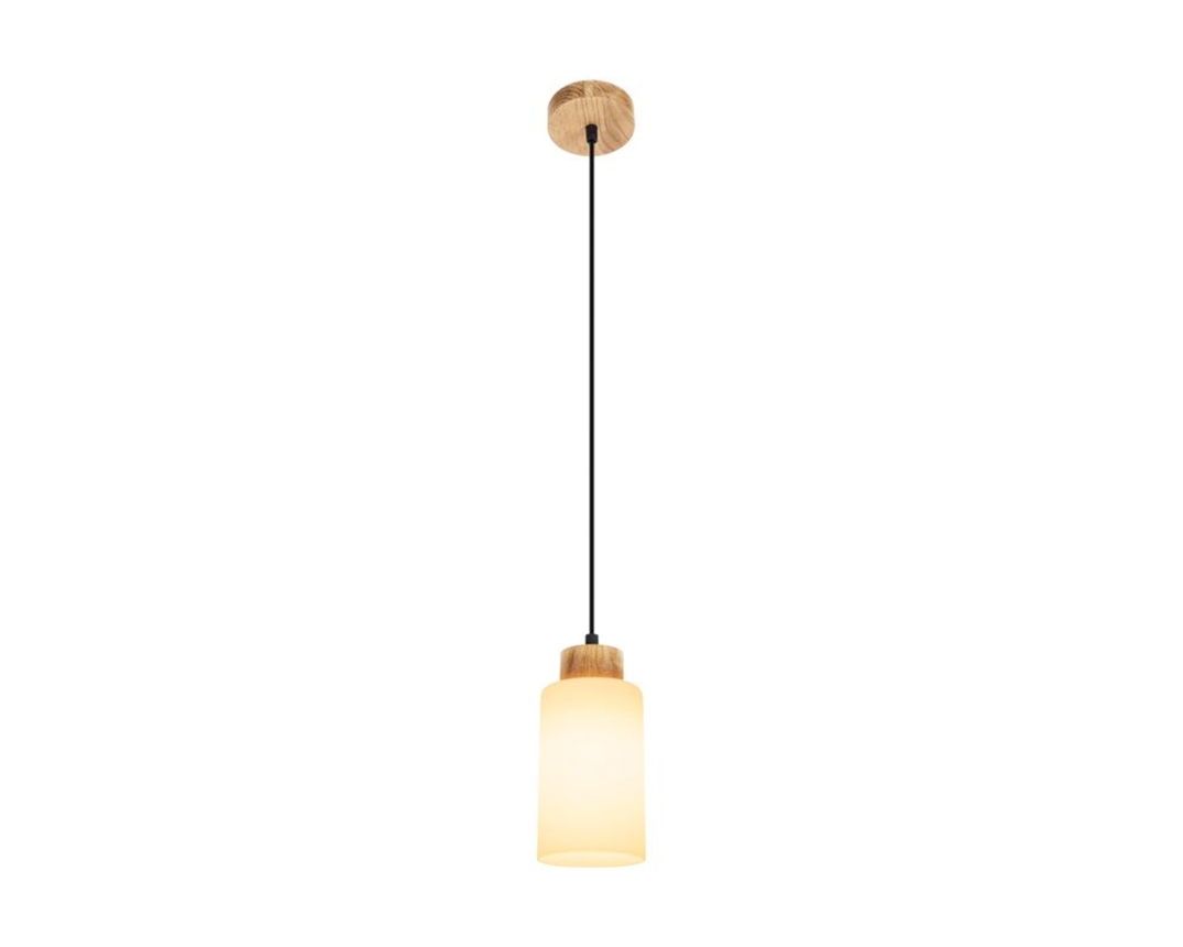 Pendelleuchte "Mostar", Eichenholz/Glas, ein Schirm