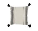 Vorderseitig jacquardgewebte Kissenhülle aus natürlicher Baumwolle, mit Tasseln und Reißverschluss.