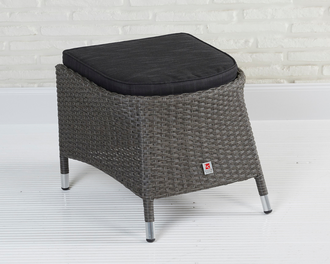 Dieser schöne Hocker aus Kunststoffgeflecht ist die ideale Ergänzung als Beinablage oder als zusätzlicher Sitzplatz.