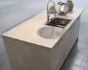 Hingucker in dieser Planung ist das verwendete Arbeitsplatten-Material als Abschlußelement für die verplanten Schränke, dies gibt der Küche nochmals mehr Optik und sorgt für eine klare Abgrenzung der Frontoptik.